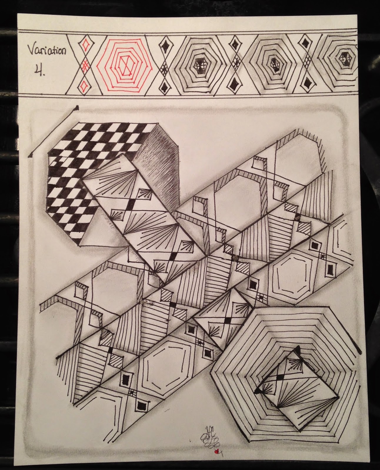 | (This tangle is from a sister blog, Call it what you Quill and is from the same owner of The Art Zenter) deconstruction, with 3 variations. |
